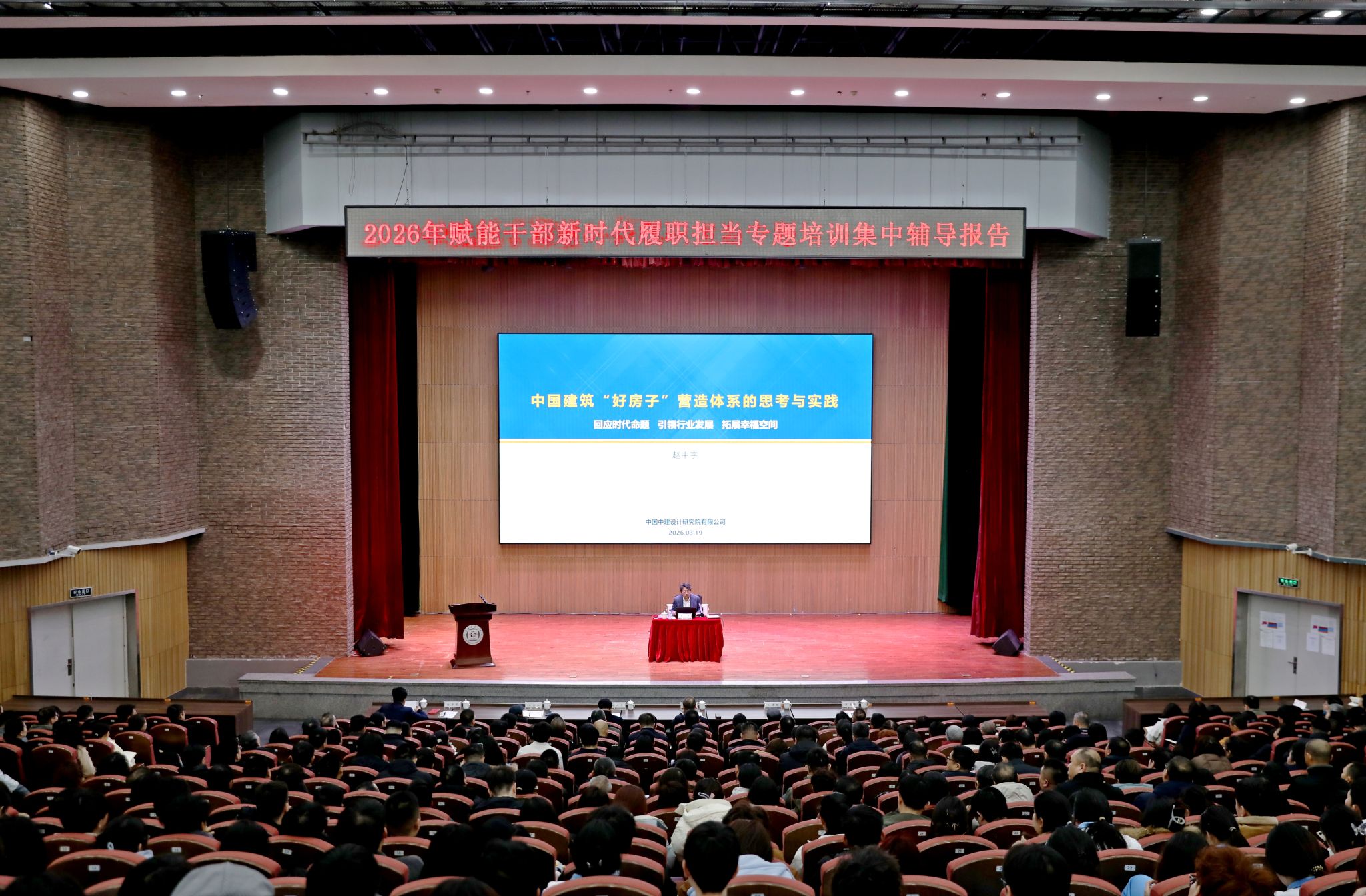 随后,赵中宇为广大干部师生作了题为《中国建筑“好房子”营造体系的思考与实践》的精彩讲座。这是2026年赋能干部新时代履职担当专题培训的一次集中学习辅导报告。赵中宇紧扣2026年全国两会精神与“十五五”规划部署,立足全国住房城乡建设工作会议精神,从为什么做“好房子”、什么是“好房子”、中国建筑“好房子”营造体系及具体实践等4个方面,深入浅出、全面系统地解读中国建筑“好房子”营造体系的核心内涵、价值逻辑、标准体系与实践路径,围绕安全、舒适、绿色、智慧四大核心,阐释好设计、好材料、好建造、好集成、好标准、好运维的全链条营造方法,尤其是结合重大工程实践,分享“好房子”建设的技术创新、模式创新与管理创新,为广大干部师生深刻理解国家住房政策、把握行业发展方向、提升专业素养与实践能力带来权威指引、思想启迪。